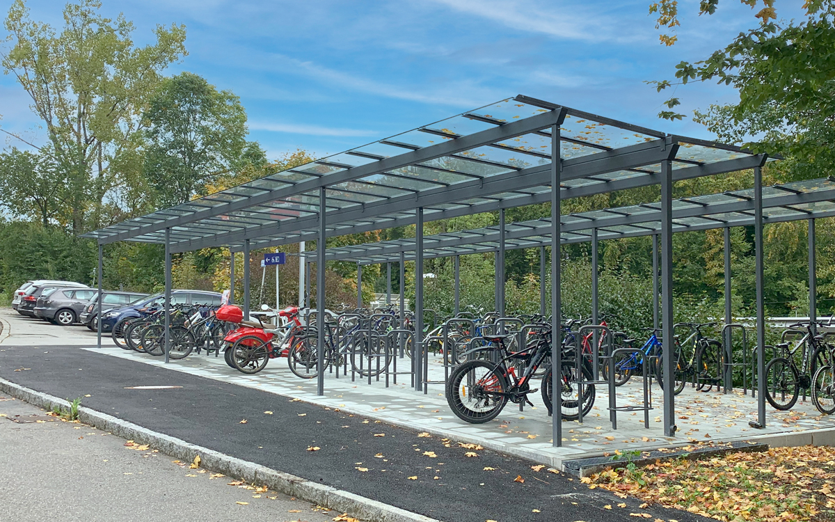 Weitere Unterscheidungsmerkmale sind die Tragkonstruktion und die Dacheindeckung. Berücksichtigung finden muss hier unter anderem der Aspekt Schneelast. Außerdem sollte der Frage nachgegangen werden, ob ein modulares System Vorteile bietet. Systemlösungen haben den Vorteil, dass die Kombination mit weiteren Objekten, wie zum Beispiel Fahrradüberdachungen, auf eine einheitliche beziehungsweise harmonische Art und Weise realisiert werden kann.