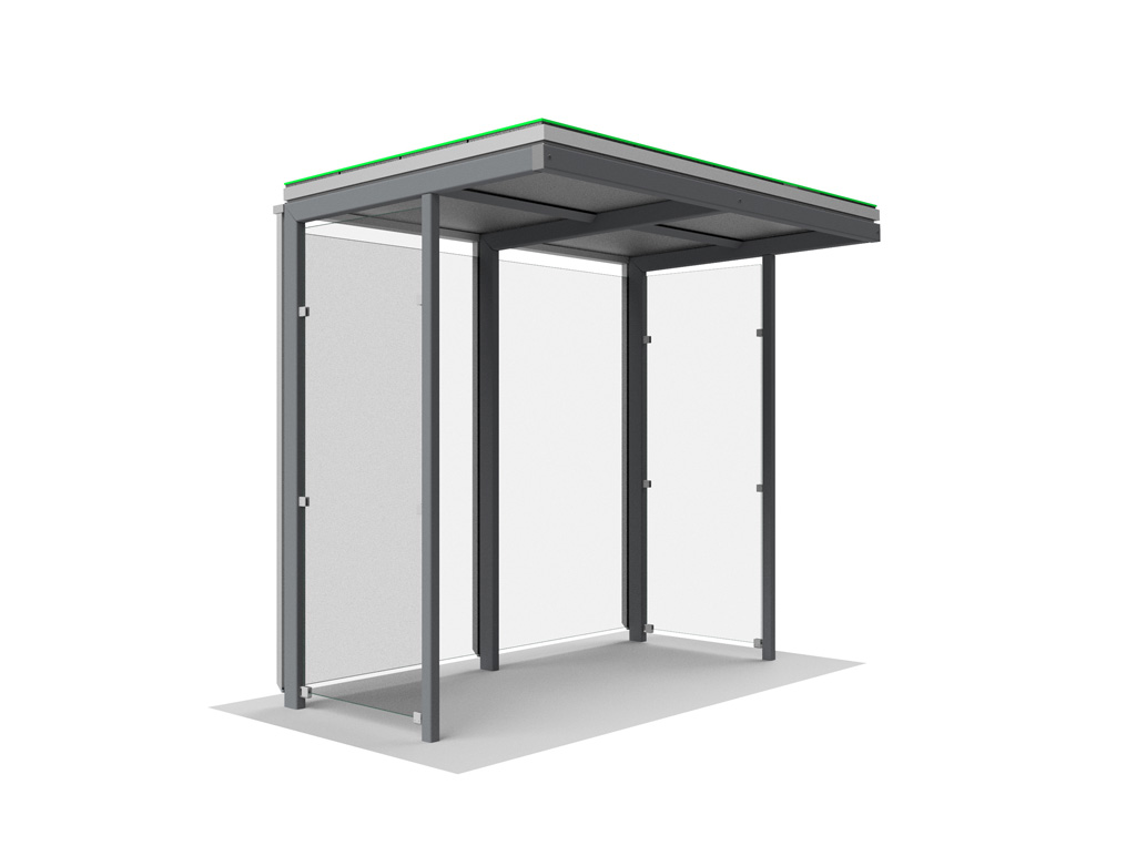 Viele Elemente wie z. B. der konstruktive Aufbau, das Rastermaß sowie die Glasbreiten der Seitenwandscheiben sind bei der neuen Variante übernommen worden. Somit bleiben unsere Kunden, die den Wartehallen-Typ A bereits im Einsatz haben, auch optisch in der Formensprache.