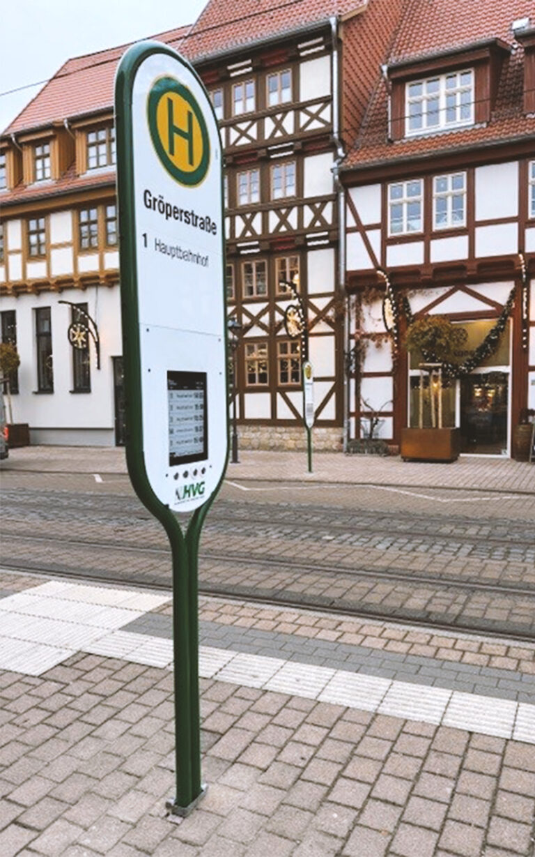 Ein besonderer Vorteil der neuen Lösung liegt in der batteriebasierten Versorgung, die einen flexiblen Einsatz ohne aufwendige Tiefbau- oder Stromanschlussarbeiten erlaubt. Damit lassen sich auch kleinere oder bisher weniger erschlossene Haltestellen einfach modernisieren. Die neuen Haltestellenschilder tragen maßgeblich dazu bei, den ÖPNV in Halberstadt attraktiver, verständlicher und nutzerfreundlicher zu gestalten.