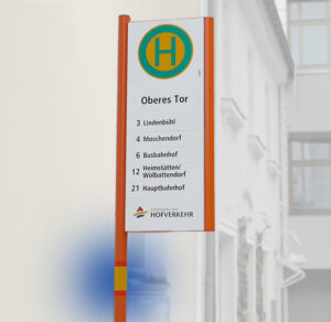 Manche Fahrgäste wundern sich oft über eine zusätzliche Markierung auf dem Haltestellenschild mit einem farbigen Dreieck (siehe Foto).
